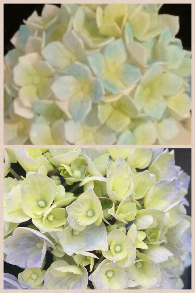 Etter navnefesten sto jeg igjen med følelsen av «hva nå??» All planleggingen, lesingen og dillingen med kakepynt var … Ferdig…? Det kunne vi ikke ha noe av, så jeg gikk på jakt etter mitt neste prosjekt. Mormoren til min mann fylte 90 år to uker senere, så jeg tilbød med å bake kake for anledningen. Det ble heldigvis godt mottatt! Igjen gikk jeg igang med planleggingen av type kake og utseende. Jeg hadde lyst til å lage noe med lys og sommerlig pynt, og siden en av mine favorittblomster er hortensia tok jeg utgangspunkt i en ball av hortensia som pynt og fargeskala. Knipset et bilde av en plante vi har utenfor huset og jobbet etter dette, her ser dere min utgave av blomsten og den nydelige inspirasjonsblomsten:
