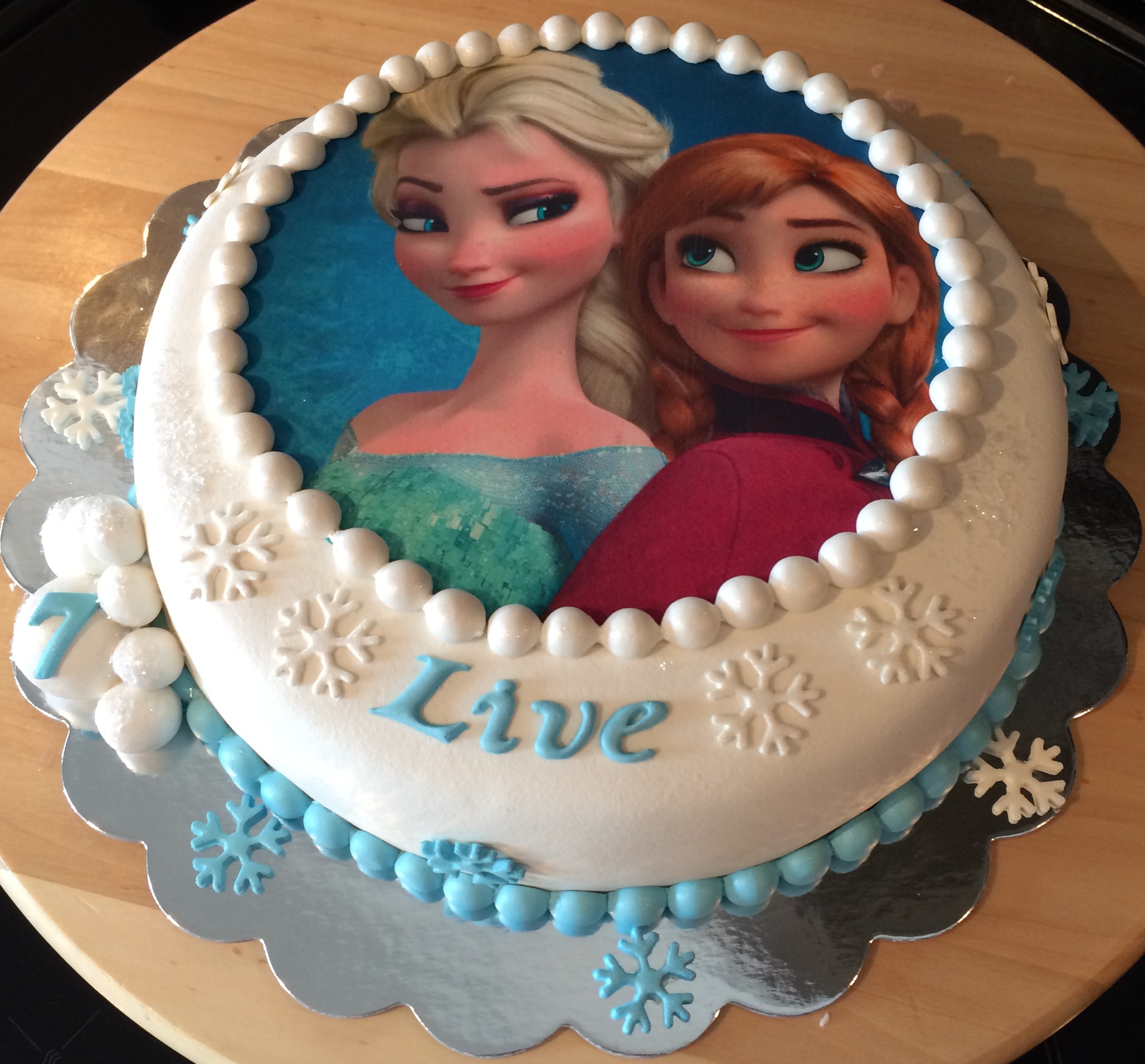 I dag har jeg sendt avgårde to bursdagskaker til en jente som fyller 7 år. Hun er glad i fotball, og ville derfor ha en fotballkake, men i stedet for den typiske svarte og hvite ville hun ha en jentefotball. Hun er visst også hektet på Frost-filmen, som de fleste andre unger for tiden, så hun skulle få en Frostkake også 🙂