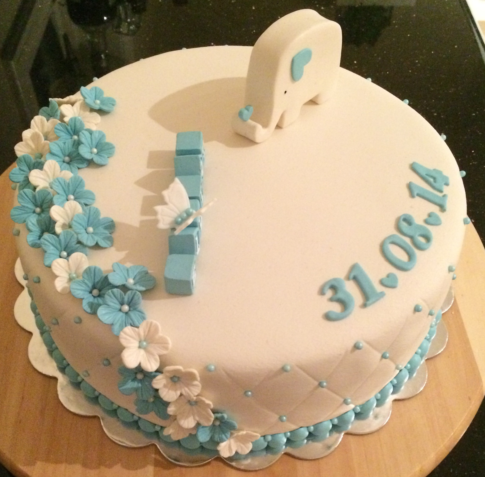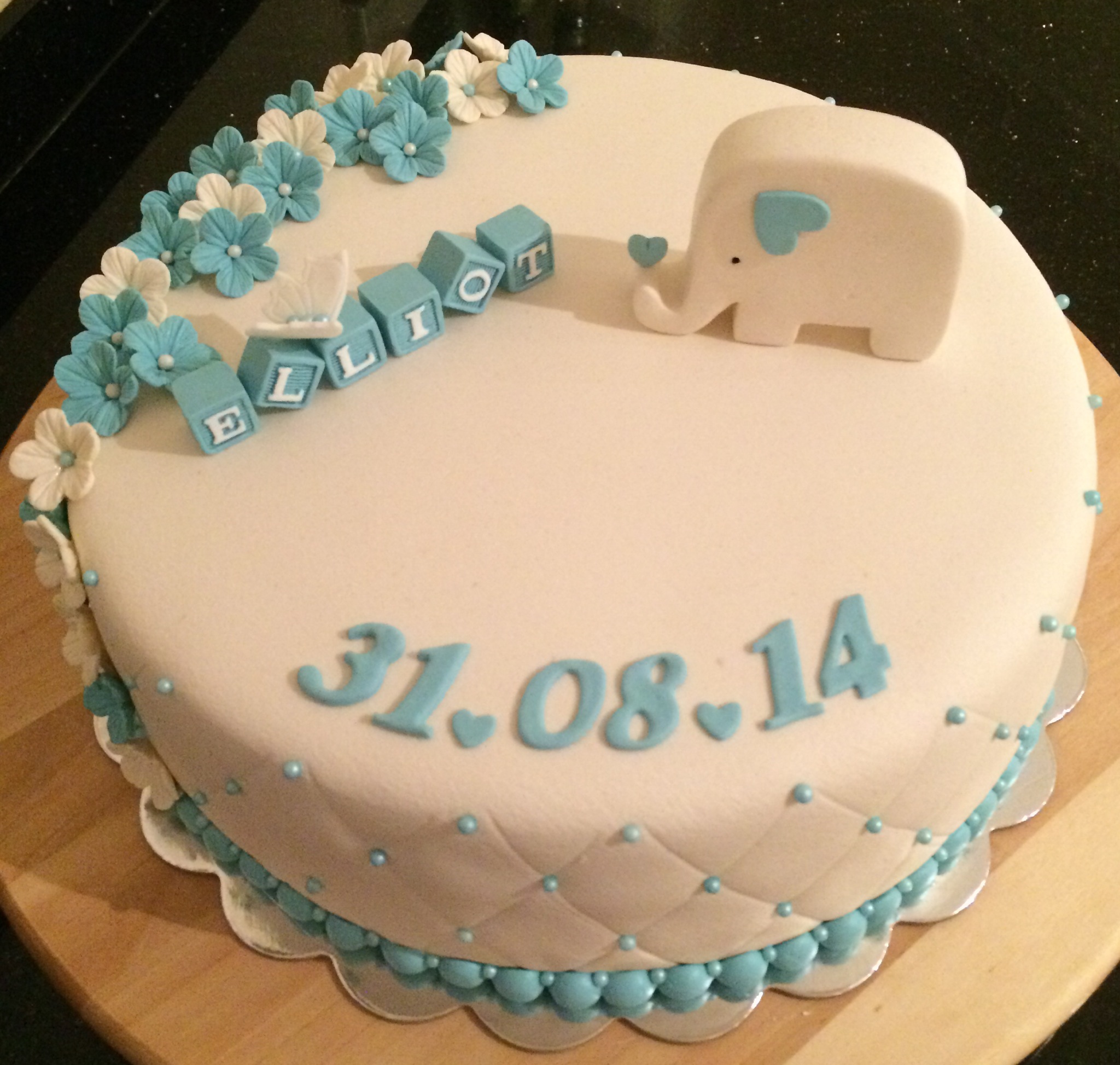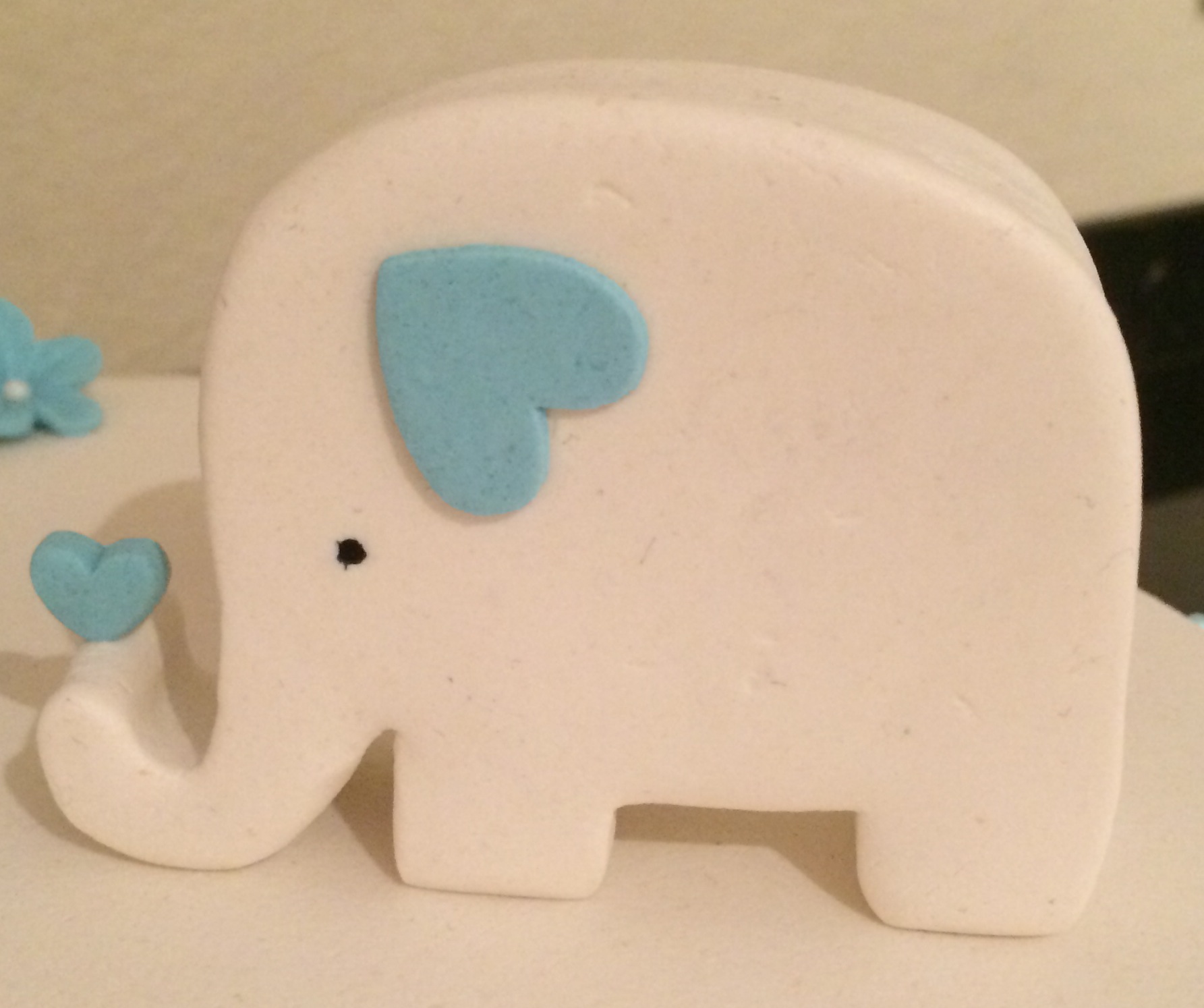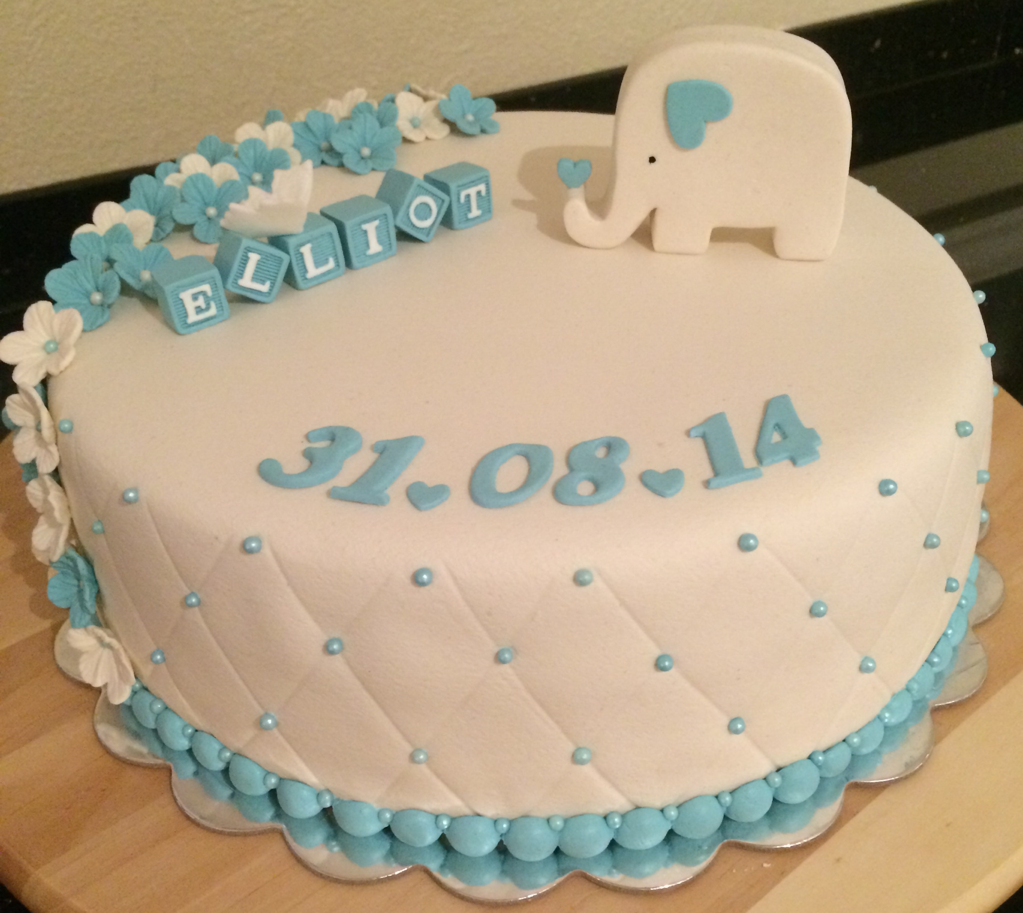 Dagens andre dåpskake var en kake til en liten gutt som heter Elliot. Mammaen hans ønsket en søt kake i blått og hvitt hvor en elefantfigur var sentral.