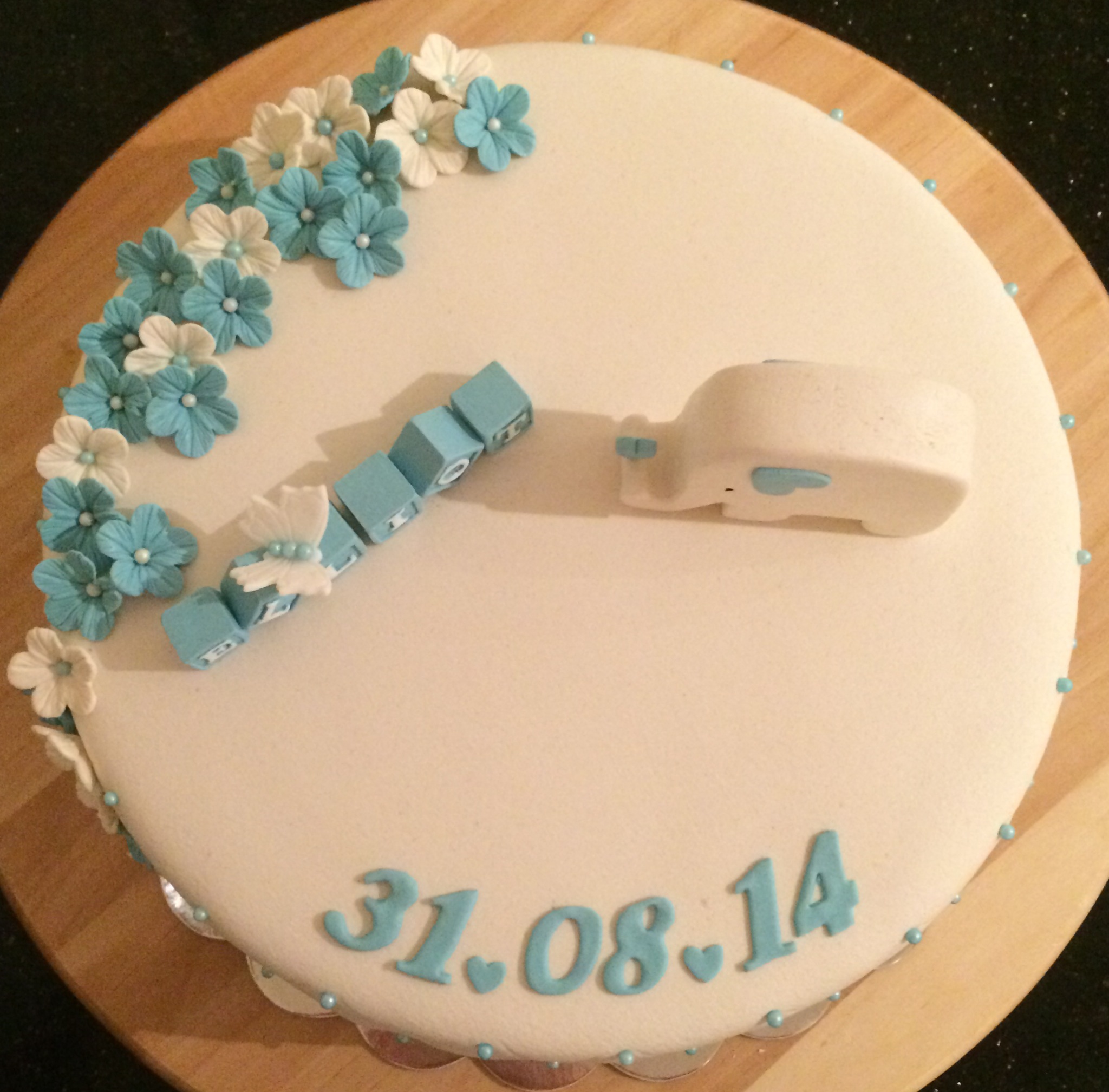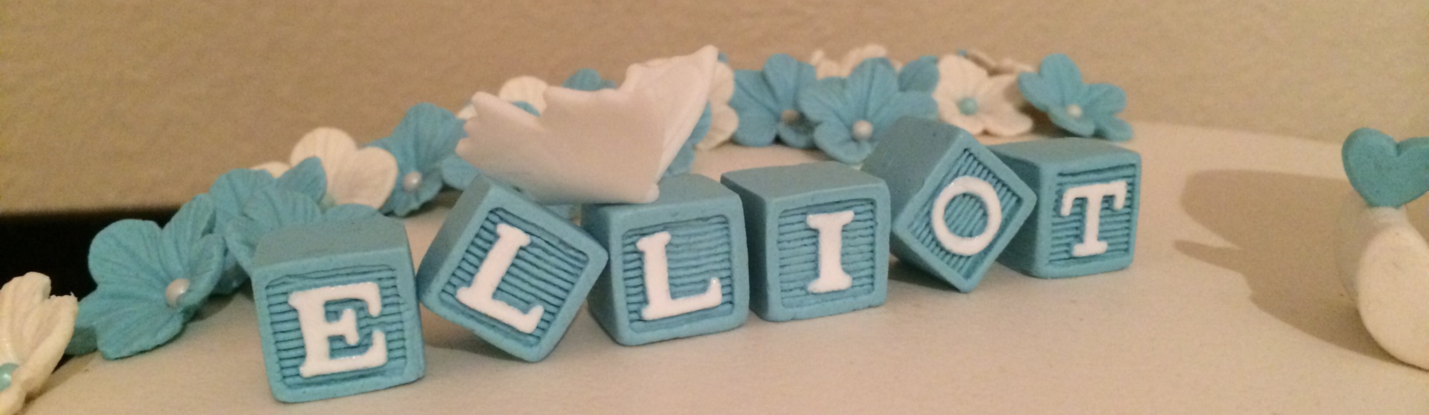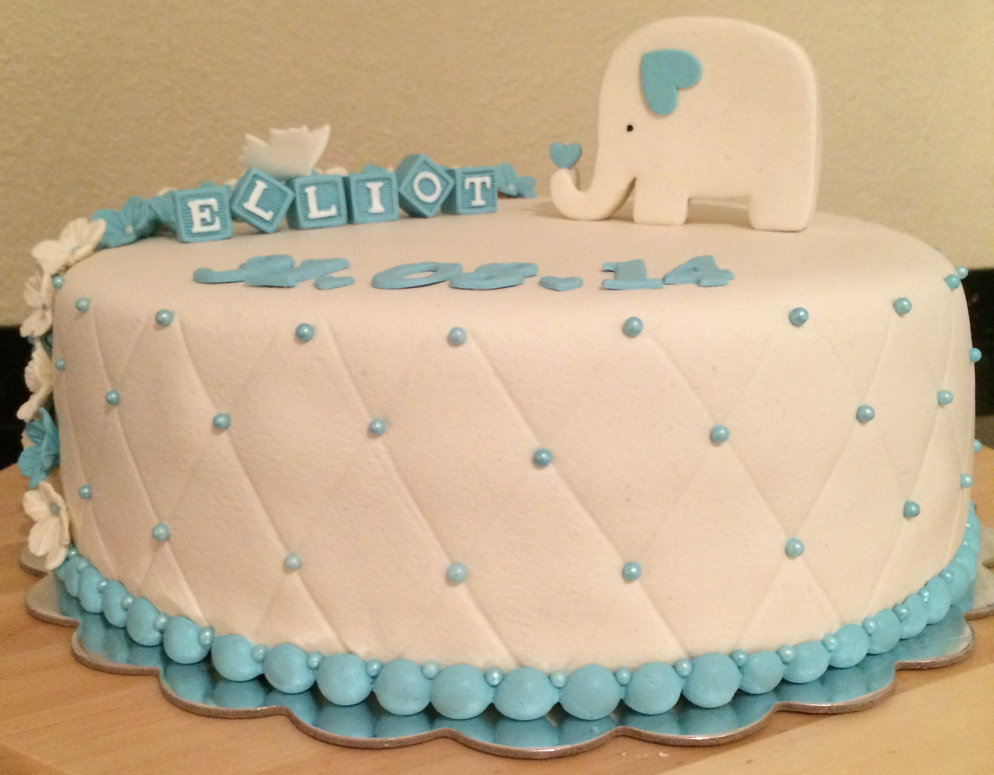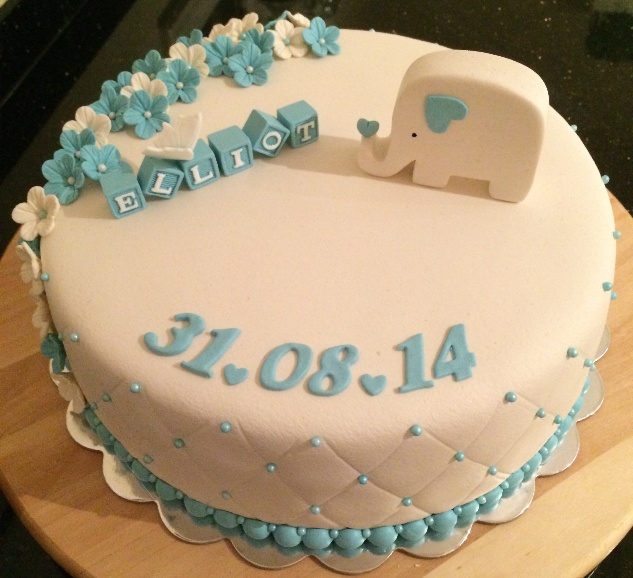 Dagens andre dåpskake var en kake til en liten gutt som heter Elliot. Mammaen hans ønsket en søt kake i blått og hvitt hvor en elefantfigur var sentral.