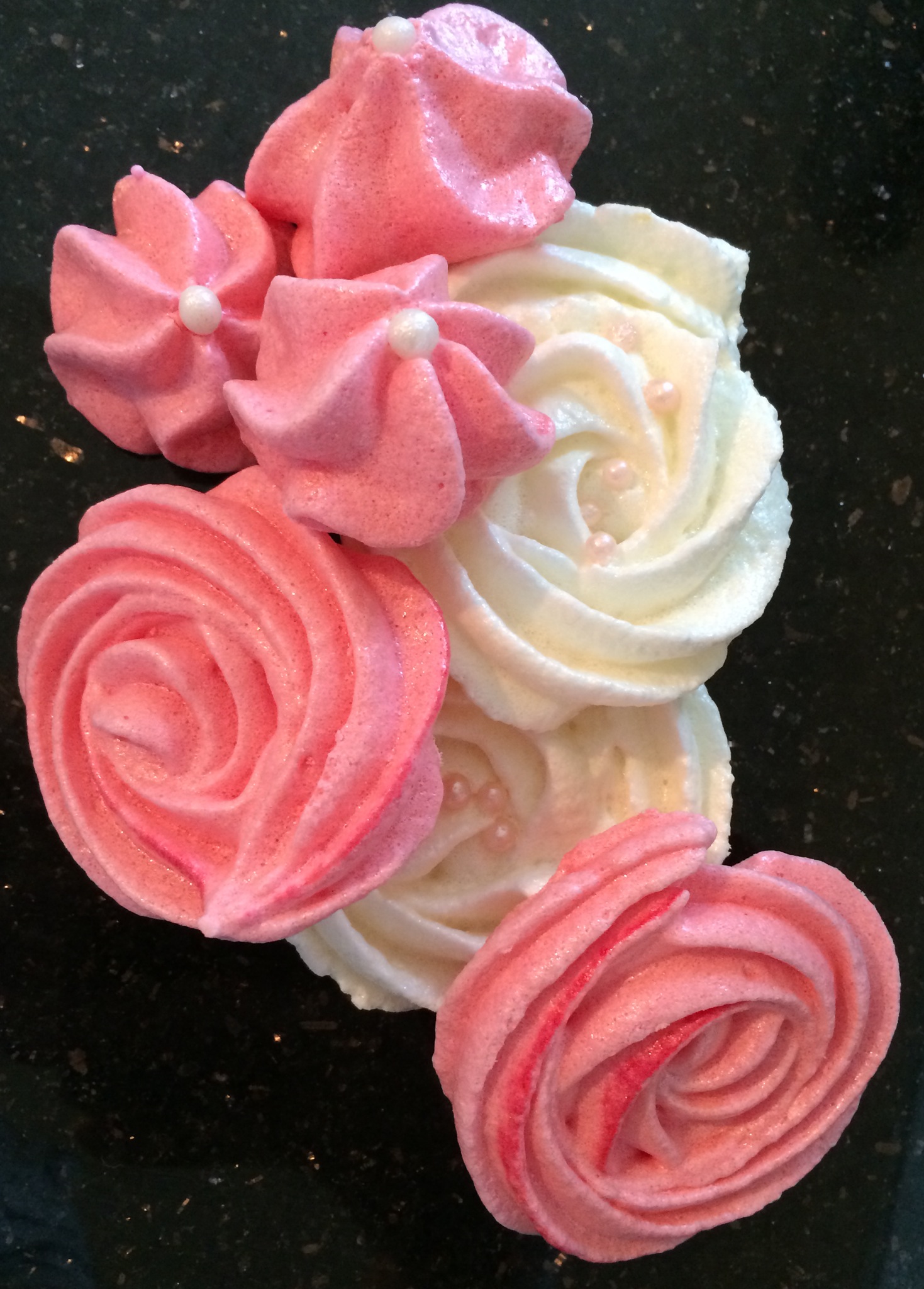 Det kan være lurt å begynne med å tørke over bakebollen med litt eddik når man skal lage marengs. Fettrester i bollen gjør nemlig at eggehviten ikke stivner. Eggehvitene og halvparten av sukkeret piskes til det skummer, da tilsettes resten av sukkeret gradvis. Når blandingen er stiv (dette tar noen minutter) siktes melisen i. Pisk videre til marengsen er glatt, blank og stiv. Sprøyt på bakepapir, evt. pynt med perler som vi gjorde, og «stek»/tørk på varmluft 70 grader i omtrent fire timer.