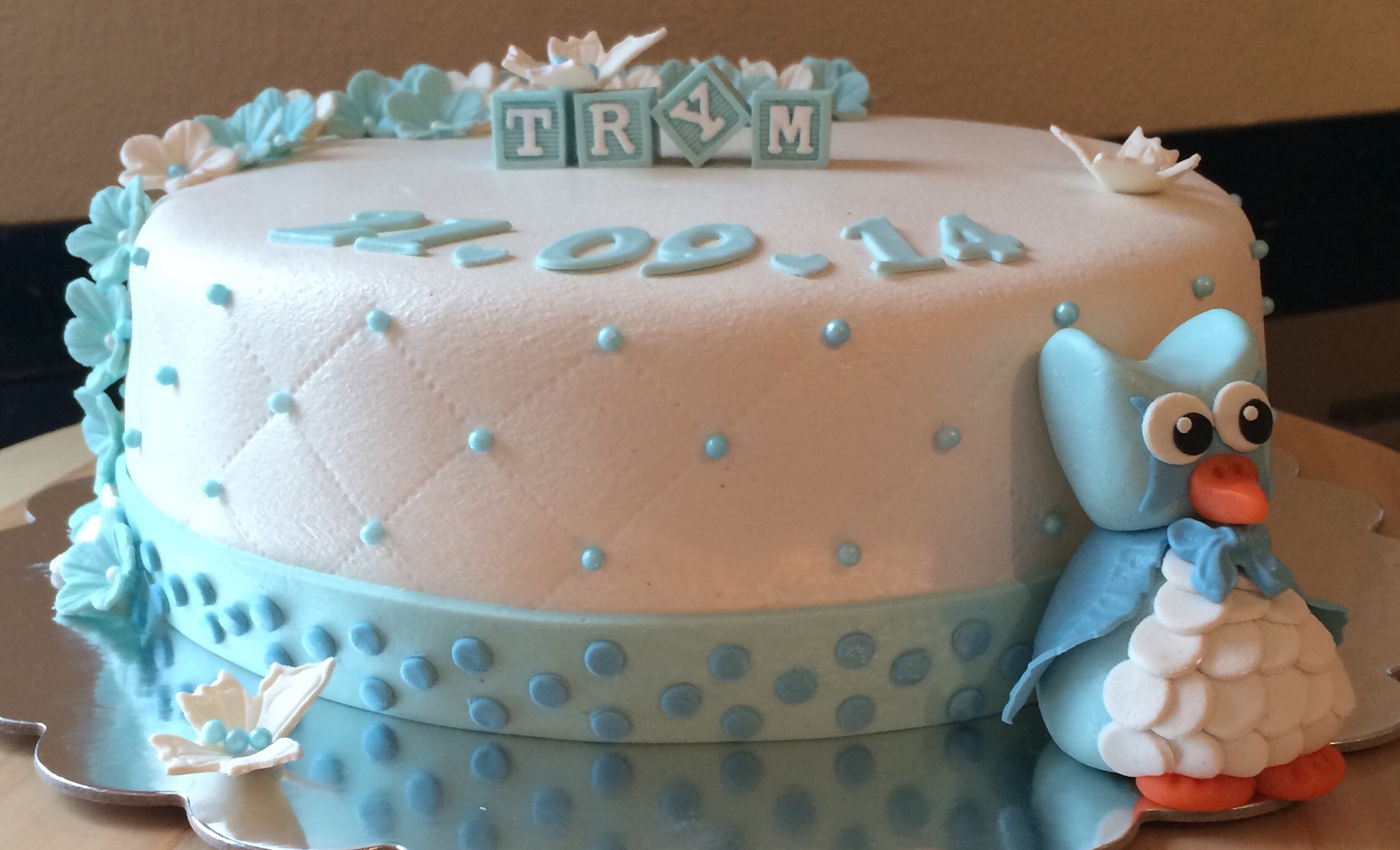 2 kommentarer om “Hvit og lys turkis dåpskake med ugle og polkadots til Trym