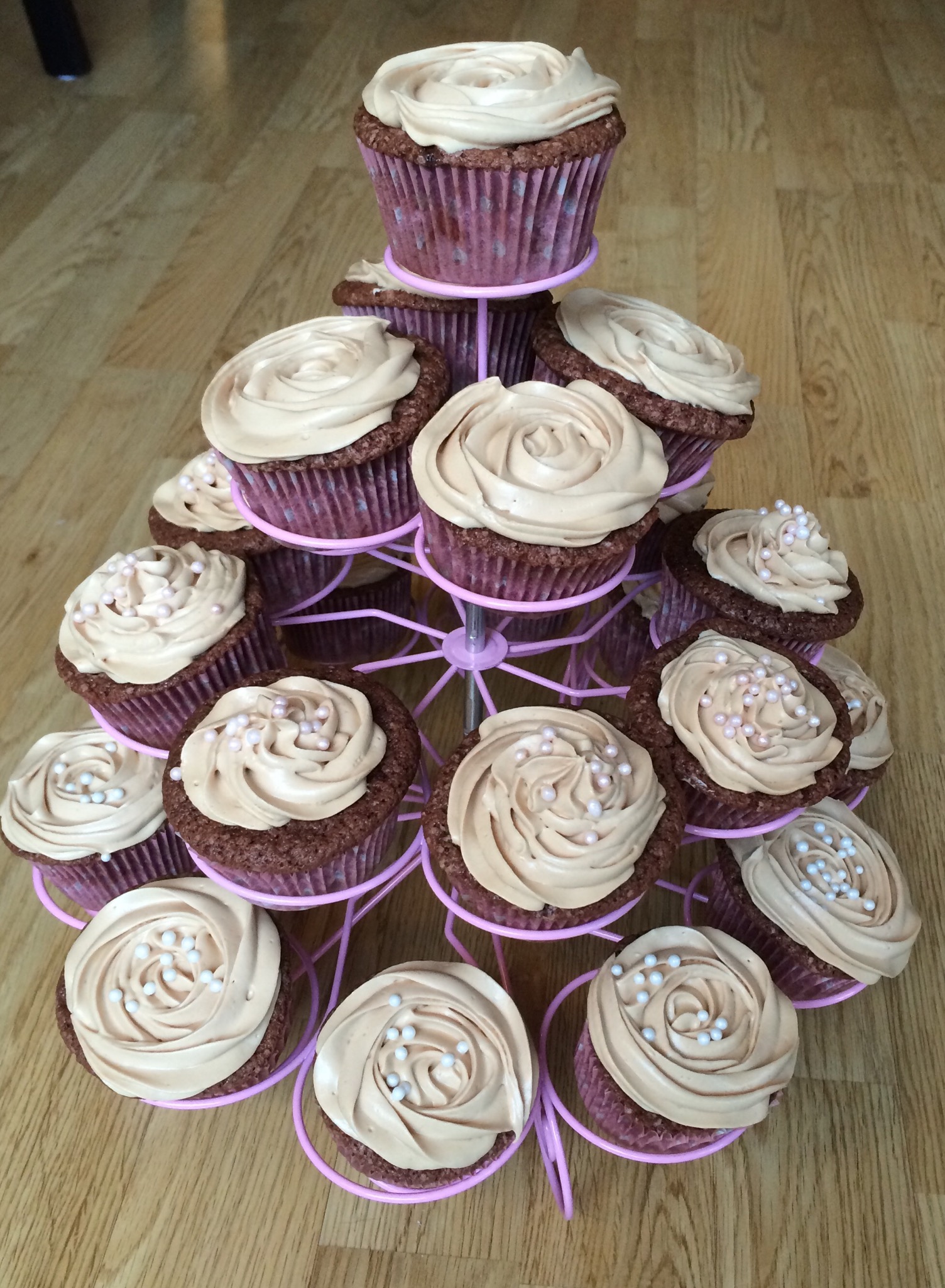 Kjapt, forsinket innlegg om onsdagens bakst: sjokoladecupcakes med dumlekrem. Man kan jo ikke gå en uke uten å bake noe, så mens jeg ventet på helgens kake bakte jeg en midt-i-uken-belønning til både oss og kontoret til mannen. Valget falt på Villa Perlesukker sine sjokoladecupcakes med dumlekrem. Dumlekrem er så enkelt som 200 gram dumle smeltet i 3 dl fløte på kokepunktet og satt kaldt i minst 6 timer før det piskes som vanlig krem. Så godt, så enkelt. Sjokoladecupcakesene var jeg ikke helt fornøyd med, jeg synes de ble for «enkle» i smaken, veldig barnevennlig, men i kombinasjon med dumlekremen ble det litt i søteste og mildeste laget for meg. Kanskje det hadde gjort seg med litt salt karamellsaus over… Hmmm… Jakten på de perfekte sjokoladecupcakesene fortsetter.