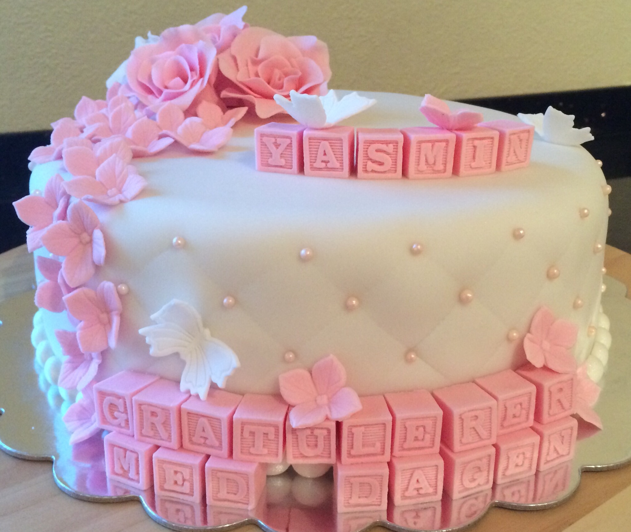 Kaken er en lys utgave av Annas favorittsjokoladekake med melkesjokoladekrem, sukkerpastatrekk og -pynt, og med en jentefarget overraskelse i midten: