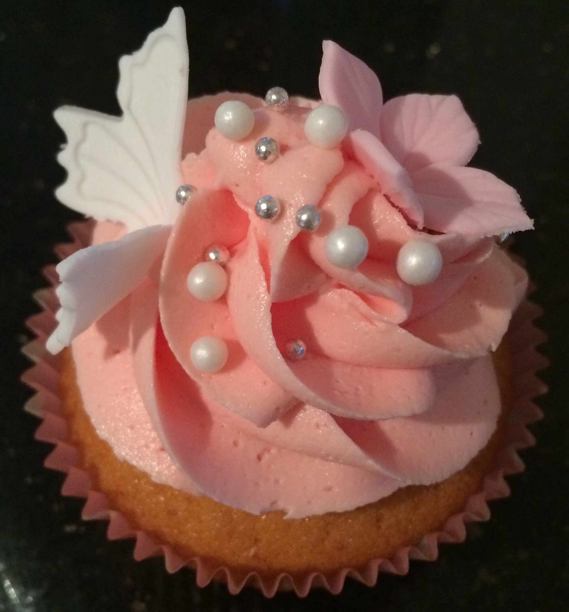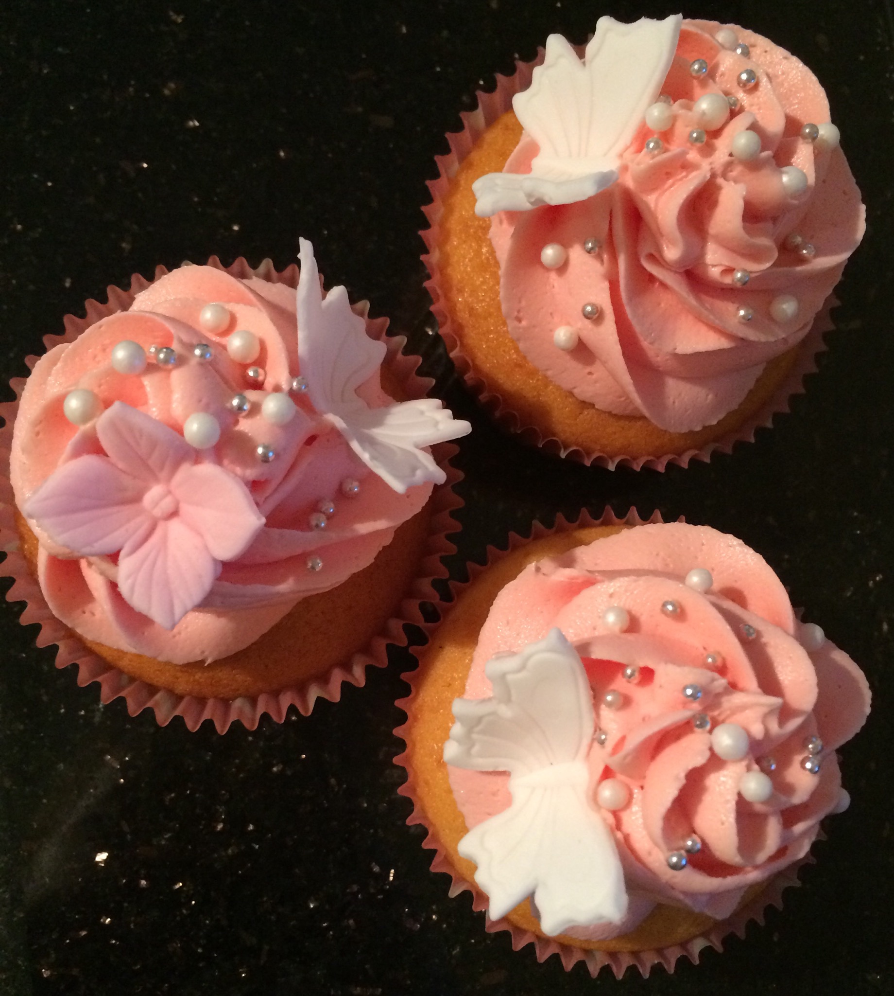 I tillegg ønsket Yasmin og mammaen seg cupcakes i rosa og hvitt med matchende sommerfugler og blomster: