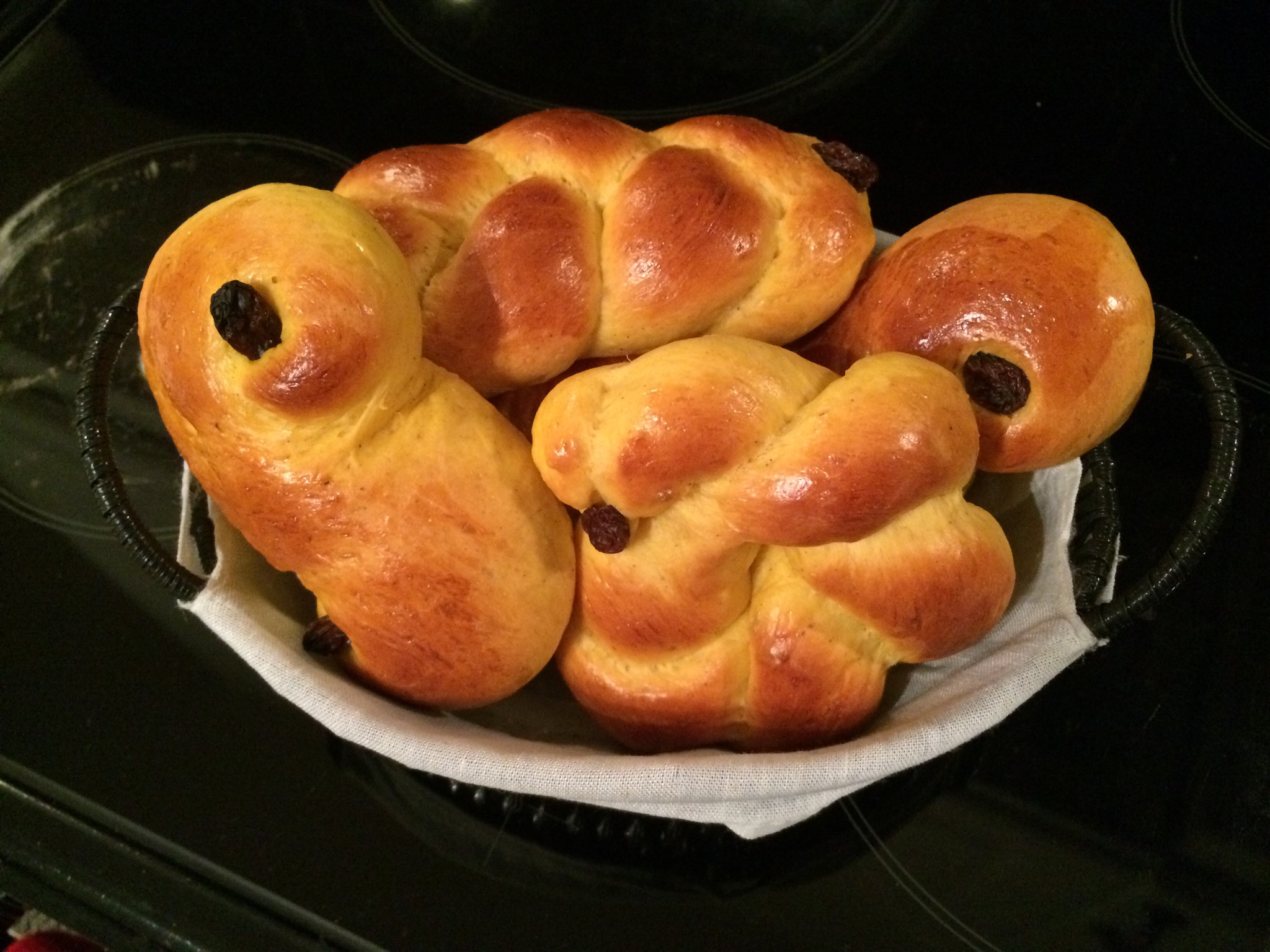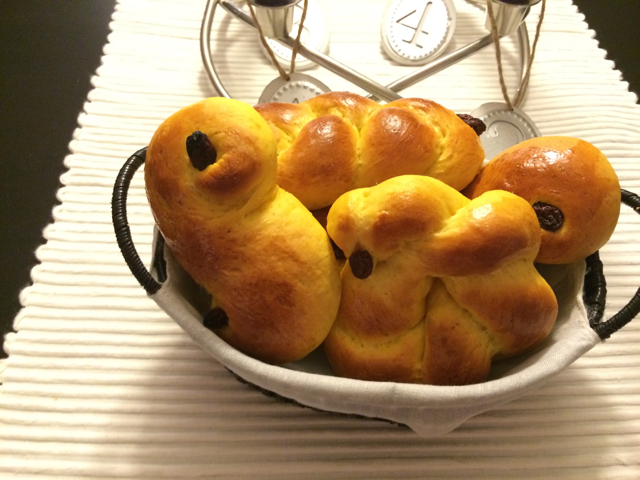 Dette ble i alle fall det ferdige resultatet, store saftige lussekatter: