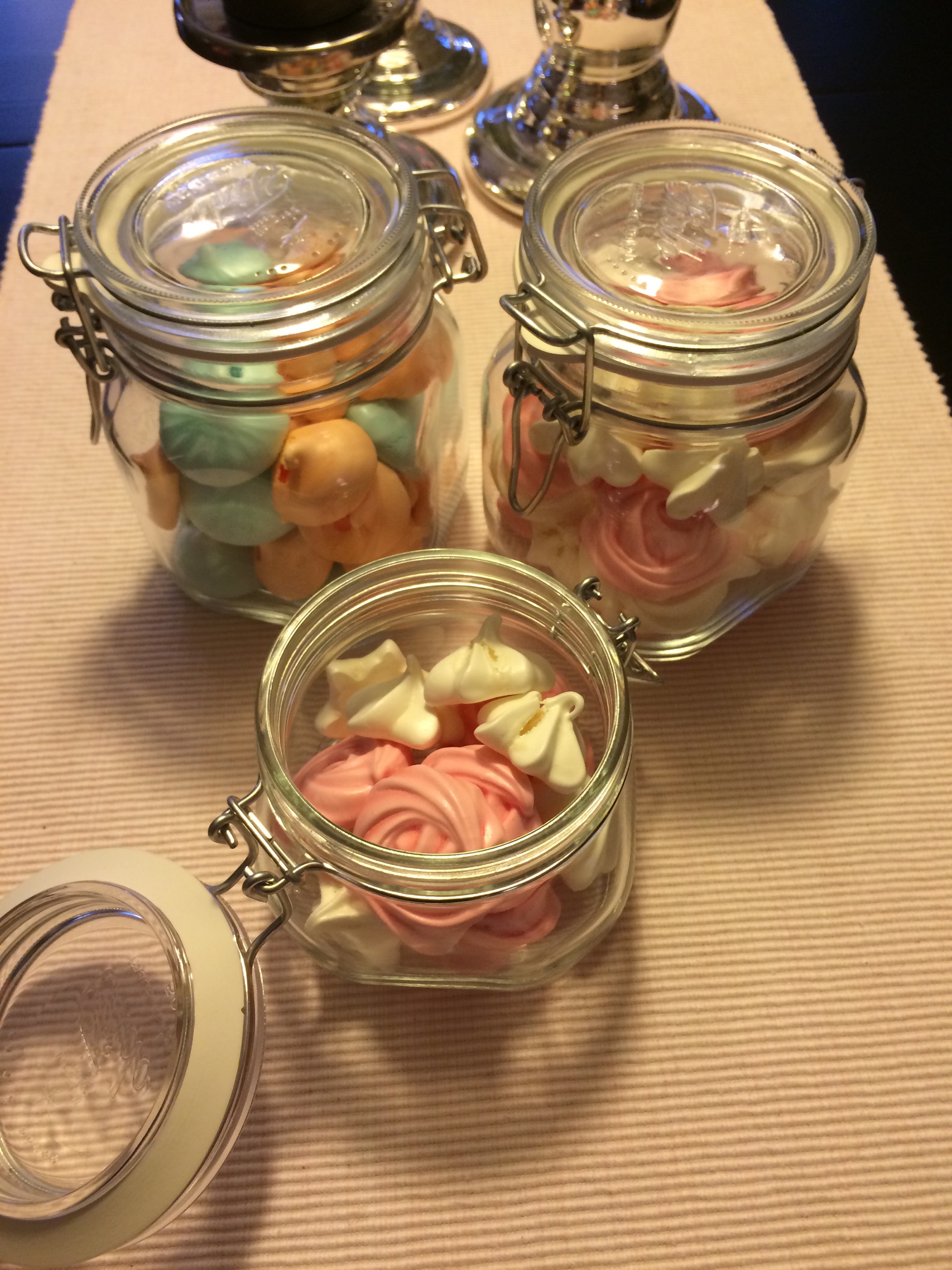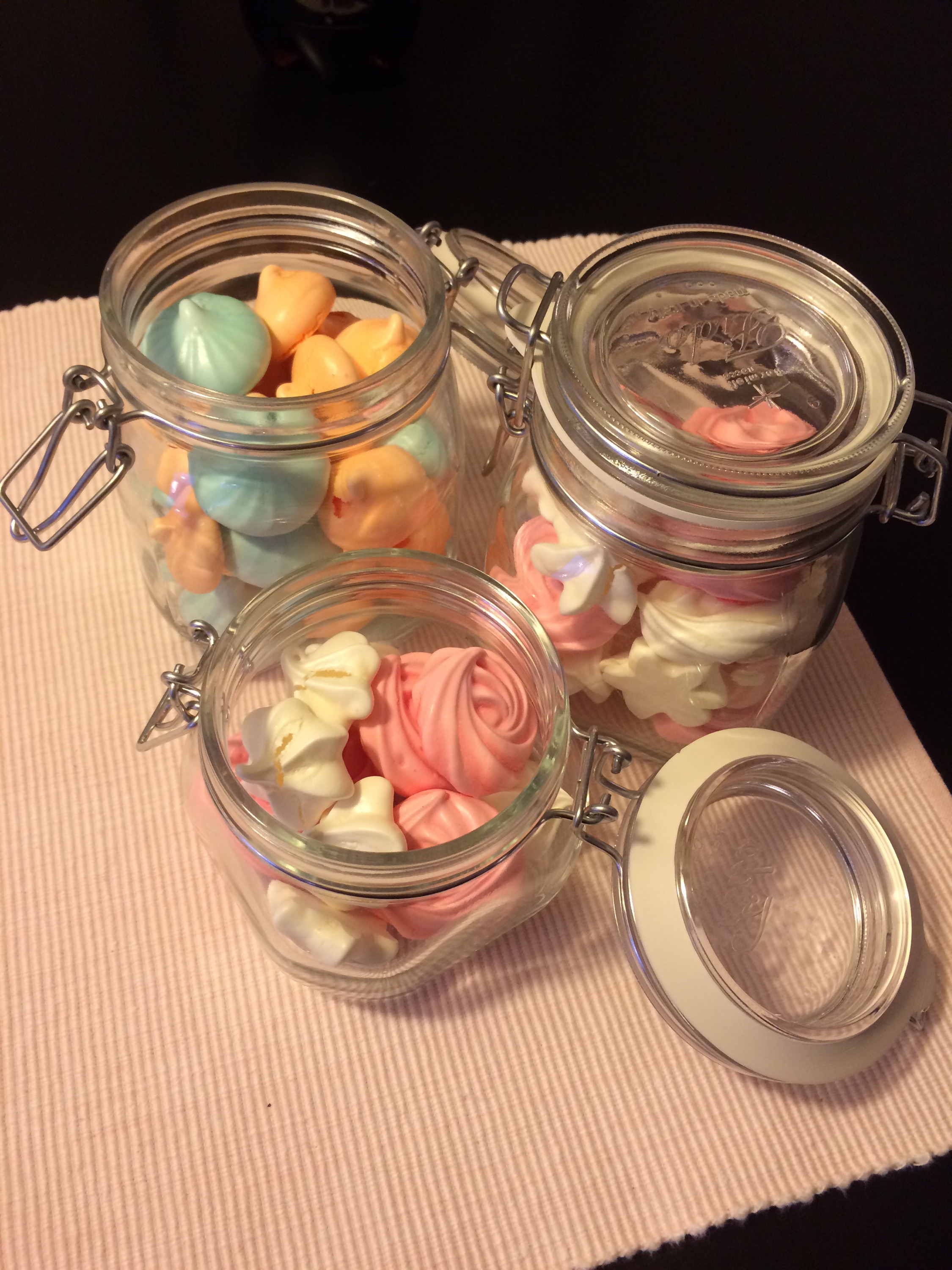 Eggehvitene piskes med sitron og salt til de begynner å stivne, så tilsettes sukkeret gradvis. Når man har oppnådd en tykk og glatt marengs har man i siktet melis og pisker videre en liten stund til marengsen er blank og glatt. Farg etter ønske og sprøyt på bakepapir. Tørkes ved 100 grader i ovnen i 1 time, deretter avkjøles i ovnen med lukket dør i noen timer eller over natten.