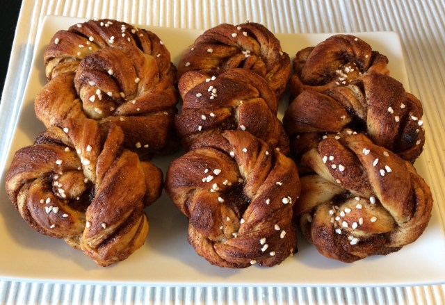 Mannen stresser over alle bakverkene jeg til stadighet fyller huset med. Så jeg tenkte at jeg skulle lage noe som i det minste kunne fryses ned og dermed være litt mindre tilgjengelig for småspising. Og siden jeg elsker gjærbakst, spising altså, ikke bakingen, bestemte jeg meg for å lage en søt gjærdeig, som i denne omgang ble til kanelknuter og skoleboller. Kanelknutene ser jo litt fancy ut, og da er det med én gang mer fristende å lage 😉 Jeg er enkel sånn!