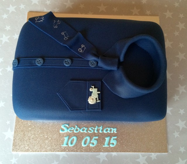 Denne helgen laget jeg konfirmasjonskake. Konfirmanten og foreldrene synes det ville være stilig med en kake i form av en Moods of Norway-skjorte siden konfirmanten er glad i dette merket, og vi ble enig om å lage den i samme farge som dressen han skulle ha på seg på sin store dag. Kjekt prosjekt, begynte å ble en stund siden jeg laget skjortekake 🙂