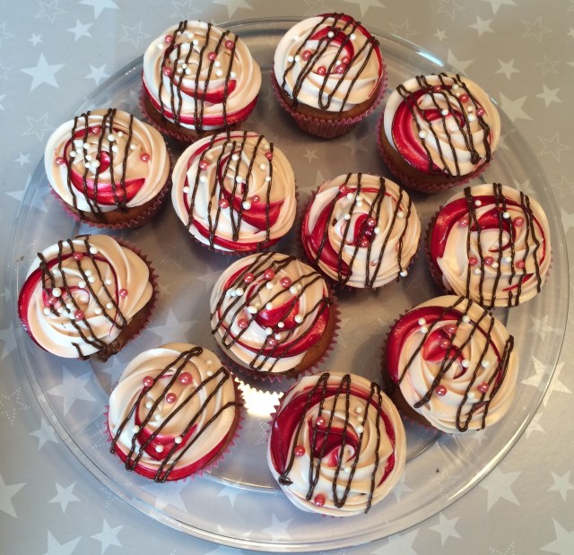 Cupcakesene ble veldig godt mottatt av både mannen og besøket, mannen mente de ville vært enda bedre med mørk sjokolade i deigen i stedet for hvit, men de forsvant fort likevel. Det har blitt normen at gjester tar med seg bakst når de drar; en ordning både vi og besøkende er godt fornøyd med 🙂