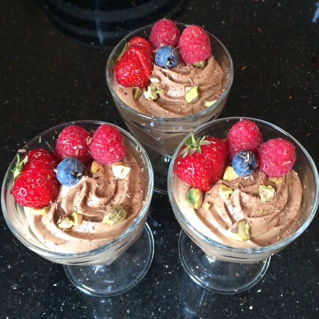 Denne sjokolademoussen slang jeg sammen i anledning et middagsbesøk på kort varsel en av de første helgene hjemme igjen. Den går kjempekjapt å lage, og smaker himmelsk, spesielt om man liker litt kaffesmak, da denne ble laget med en god slump espresso. Oppskriften fant jeg her: