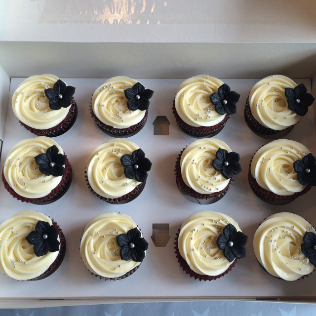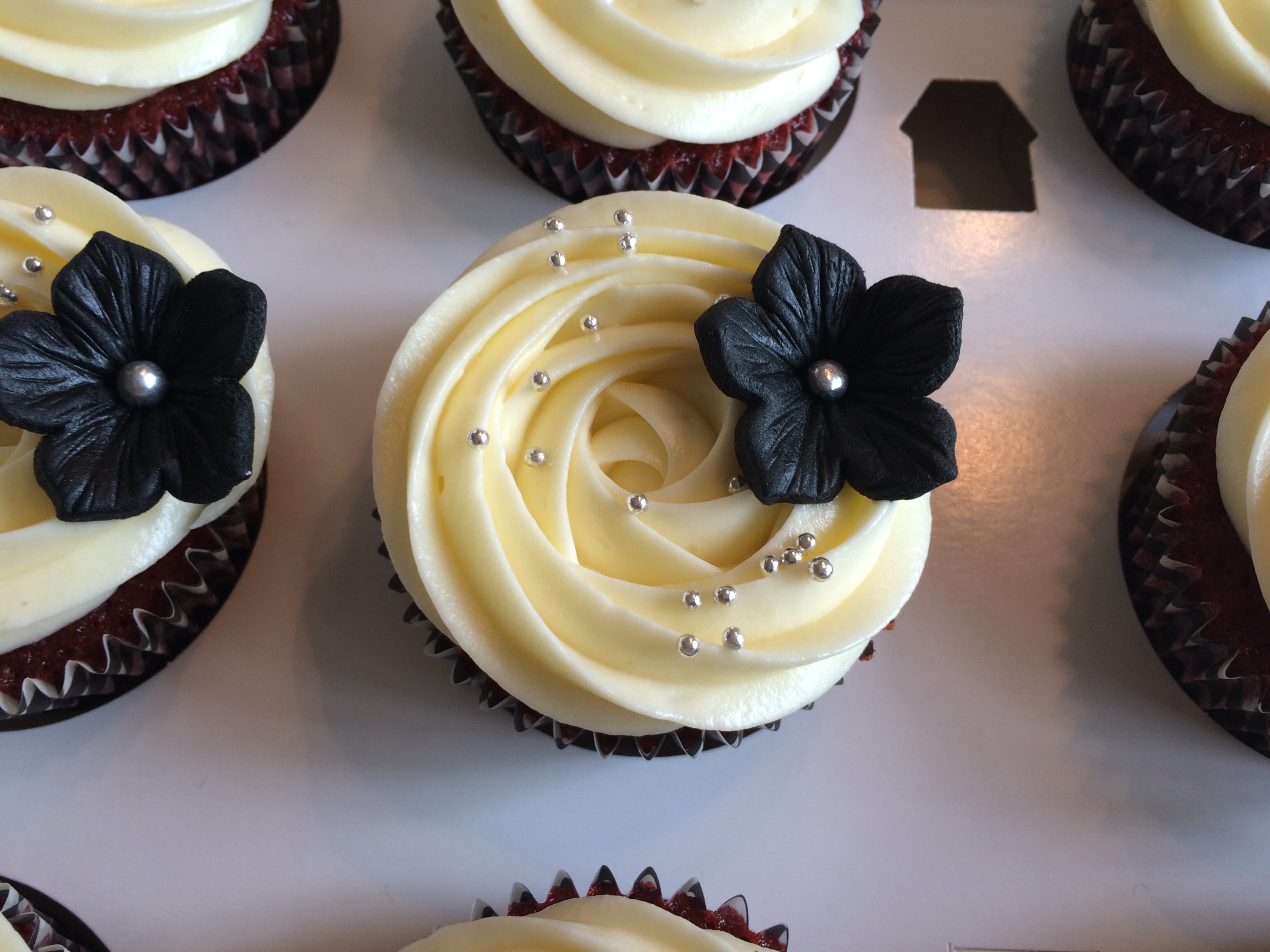 I tillegg laget jeg red velvet cupcakes med ostekrem, i samme farger som kaken: