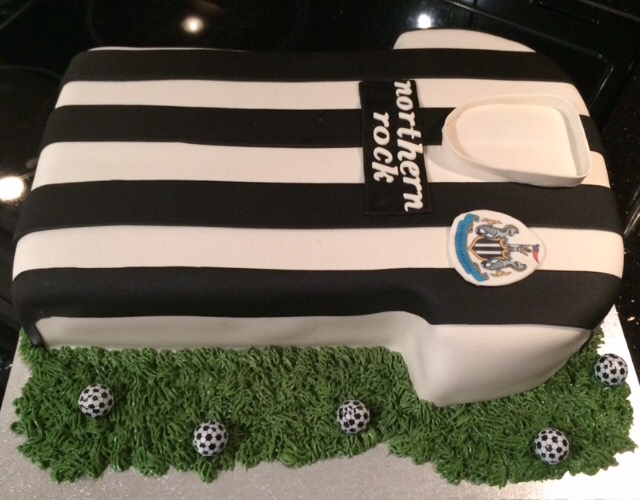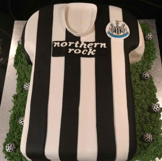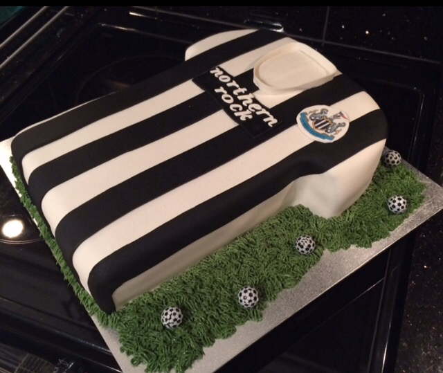 I helgen skulle sønnen til en av min manns sjefer konfirmere seg. Han er en fotballinteressert gutt, og laget er Newcastle. Moren hans ville overraske ham med drakten til laget i kakeform, og som sagt, så gjort!