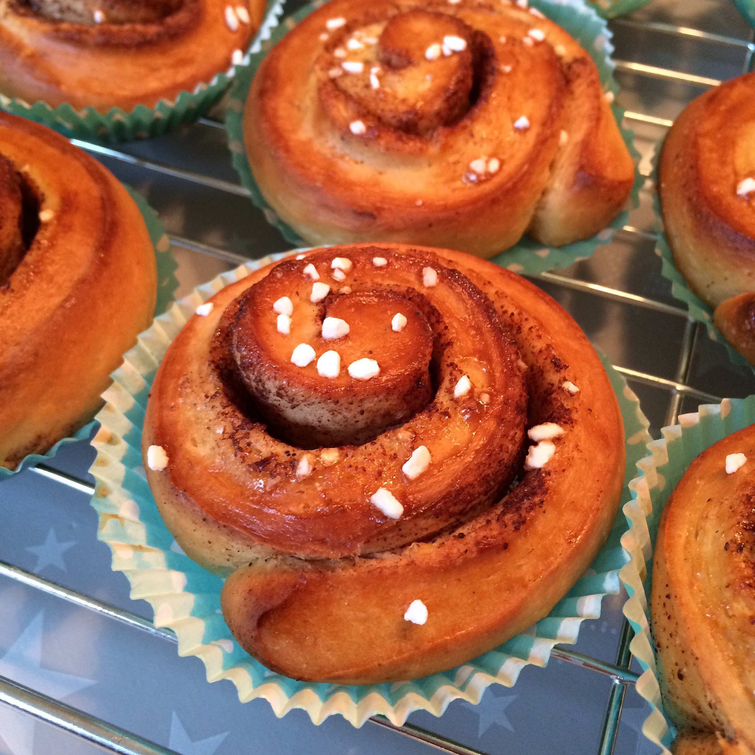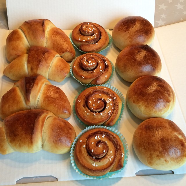 Laget noen horn fylt med mandelmasse, noen hveteboller, og selvsagt en liten haug kanelboller.