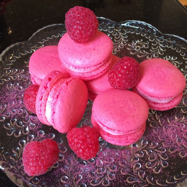 Jeg har også laget bringebærmakroner. Grunnoppskrift: