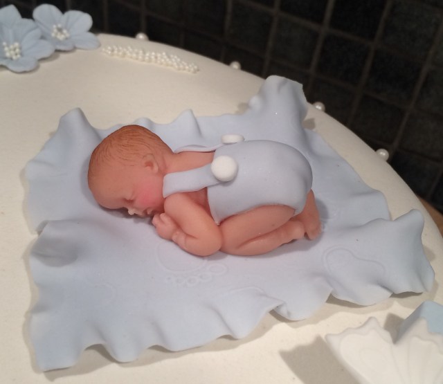 Veldig fin dåpskake! Har du laga babyfiguren sjølv? I så fall, korleis har du laga den?