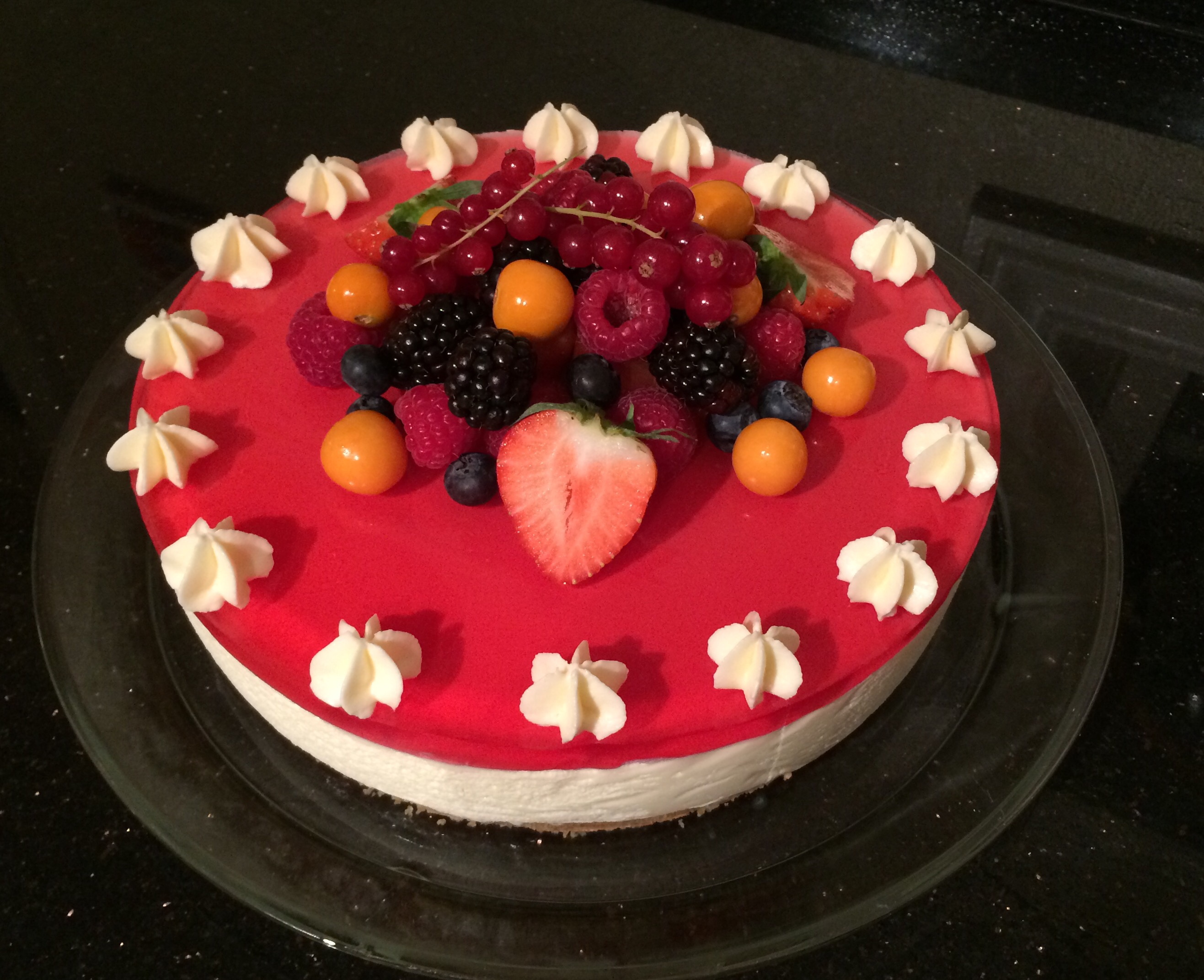 Som nevnt fylte min mann nylig 30, og i den anledning hadde jeg invitert venner og familie på besøk for å feire. Og selskap her i huset betyr kake. Masse kake. Siden jeg skulle lage mye forskjellig, både mat og kaker, ble det ikke noen temakake, men flere klassiske selskapskaker med mye friske bær til pynt, her kommer en oppsummering: