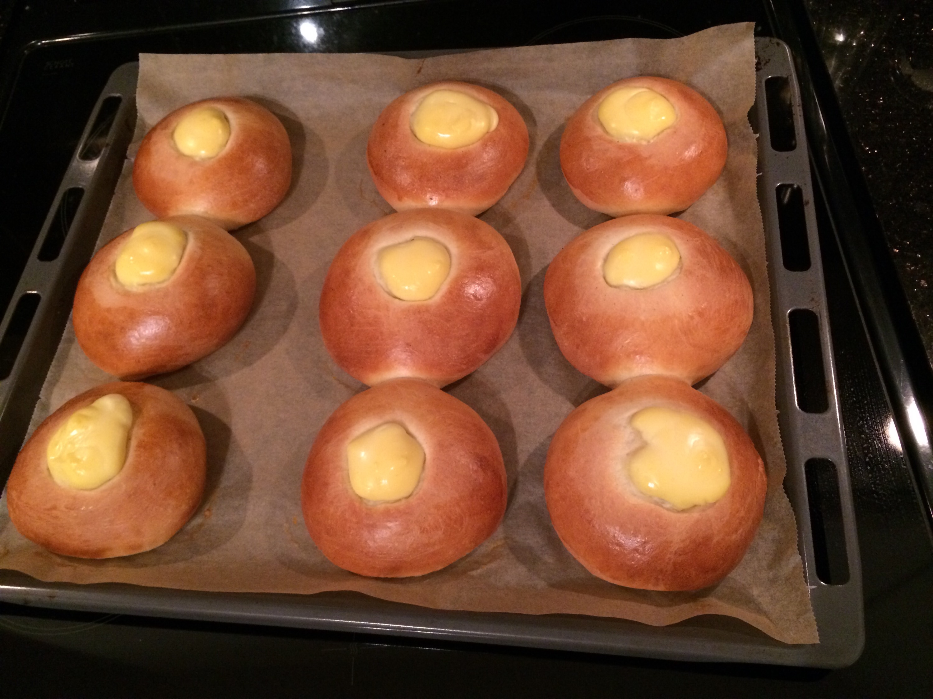 Dette innlegget blir kort og greit, siden både oppskrift og bilder av liknende prosjekter er lagt ut tidligere, men en god ting har ikke vondt av å gjentas, så here goes. For to uker siden hadde vi besøk av min mor, og siden vi nettopp hadde hatt huset fullt av kake i forbindelse med bursdag, måtte jeg finne på noe annet til kveldskos. Gjærbakst er en av mine favoritter, så jeg laget store, saftige skoleboller. Jeg bruker denne oppskriften fra Trines matblogg til søt gjærdeig: