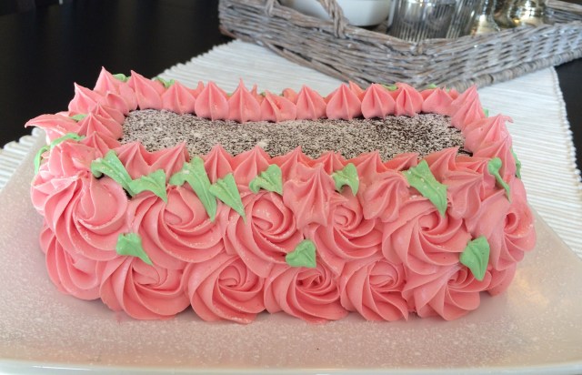 I tillegg lagde jeg vaniljecupcakes (oppskrift tidligere i innlegget) med rosa ostekrem og sukkerperler.