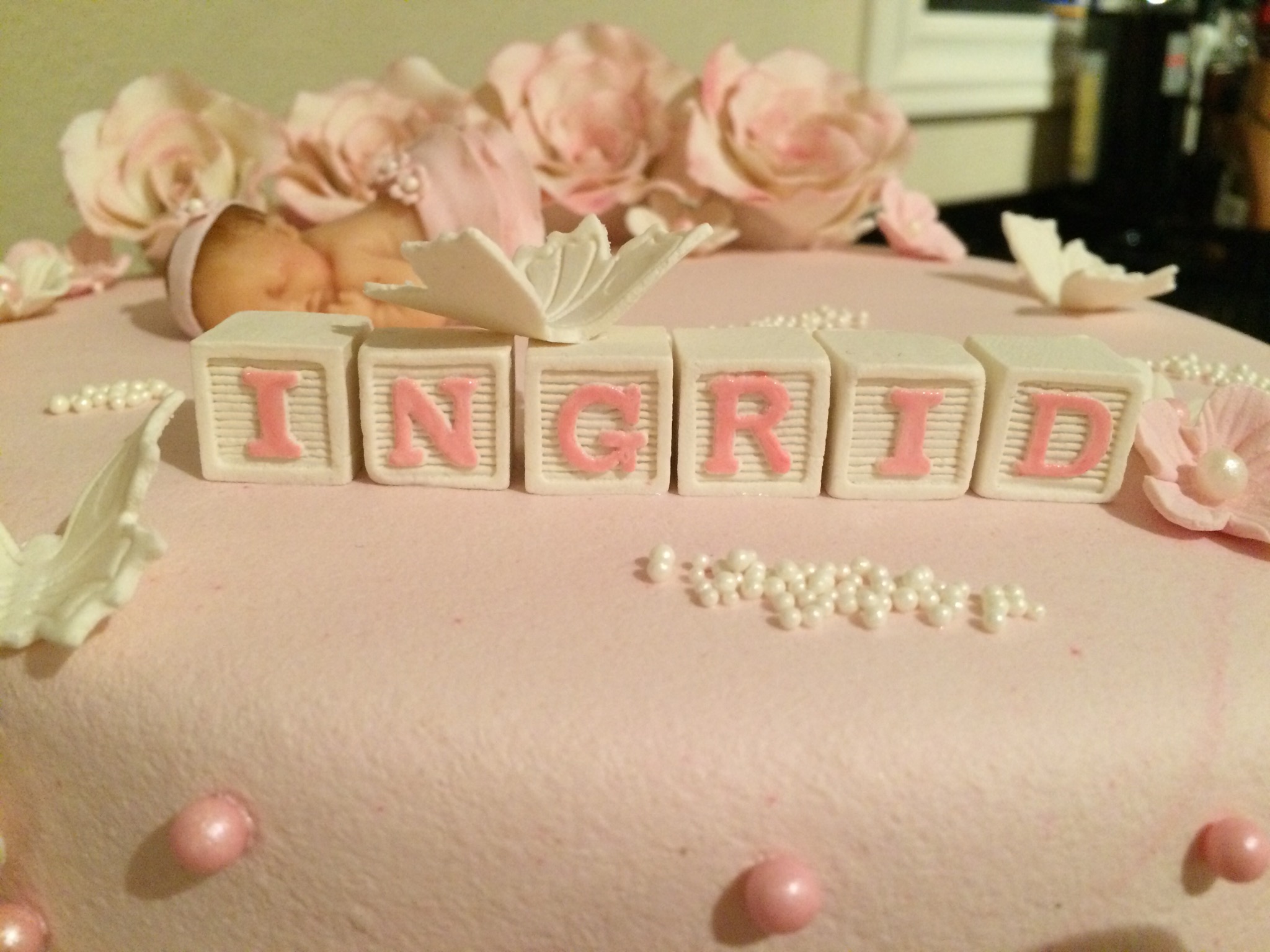 Andre dåpsbarn forrige helg var mitt tantebarn Nicolai. Her hadde jeg temmelig frie tøyler, med unntak av fargen og navneklossene, så jeg benyttet sjansen til å prøve med på en peon av sukkerpasta for første gang.